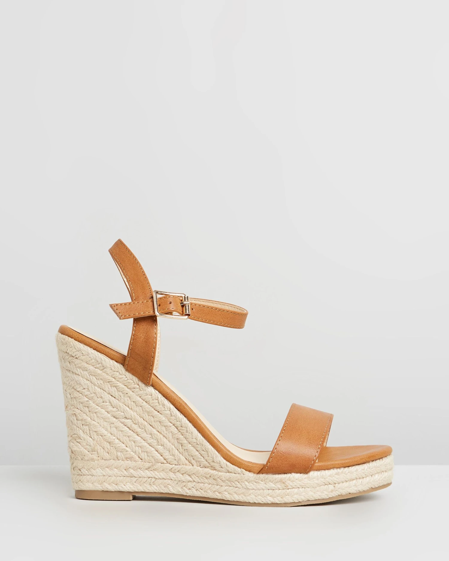 The Amaya wedges from Verali are a summer staple with their espadrille heel and neutral colourway. Pair them with a floral maxi to channel an endless summer style. – Faux leather upper; neutral shade