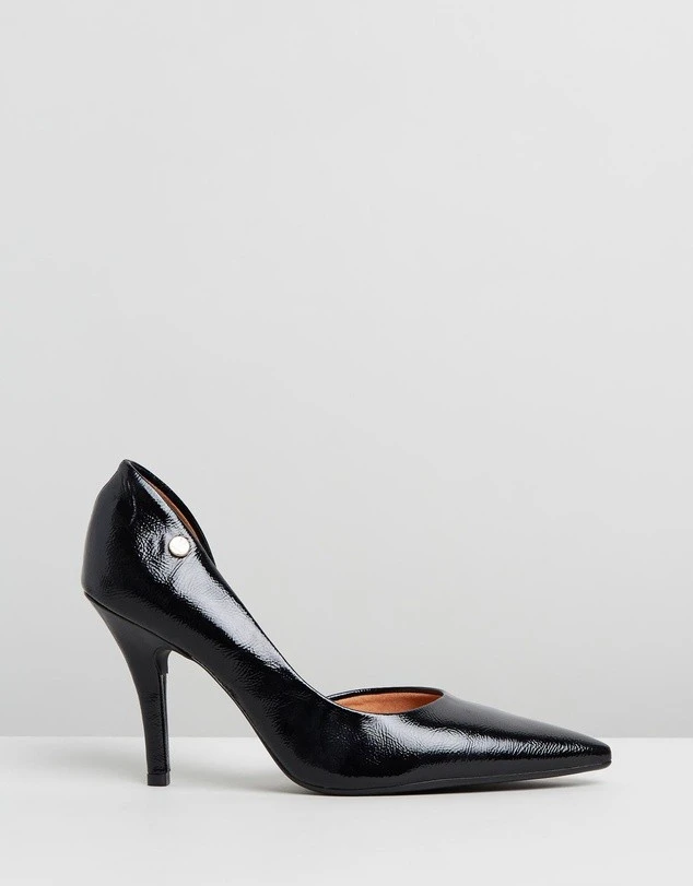Crafted from textured leatherette, the Anitta pumps by Vizzano are defined by the classic d’Orsay silhouette and sharply pointed toe.
