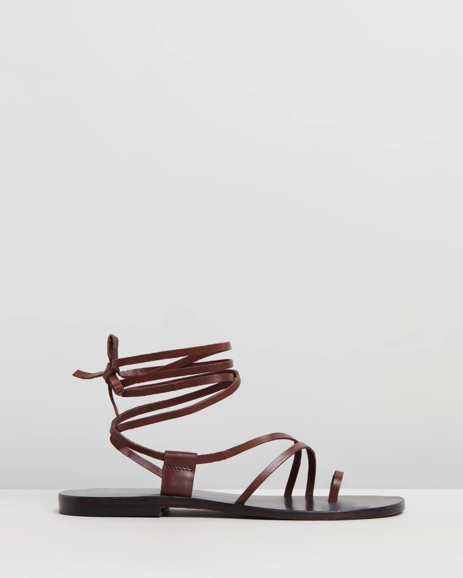 Evincing stylish resort-wear sensibility, the Arya Leather Sandals by Atmos&Here boast a a tie-up design in a spliced black and brown colourway.- Genuine leather upper