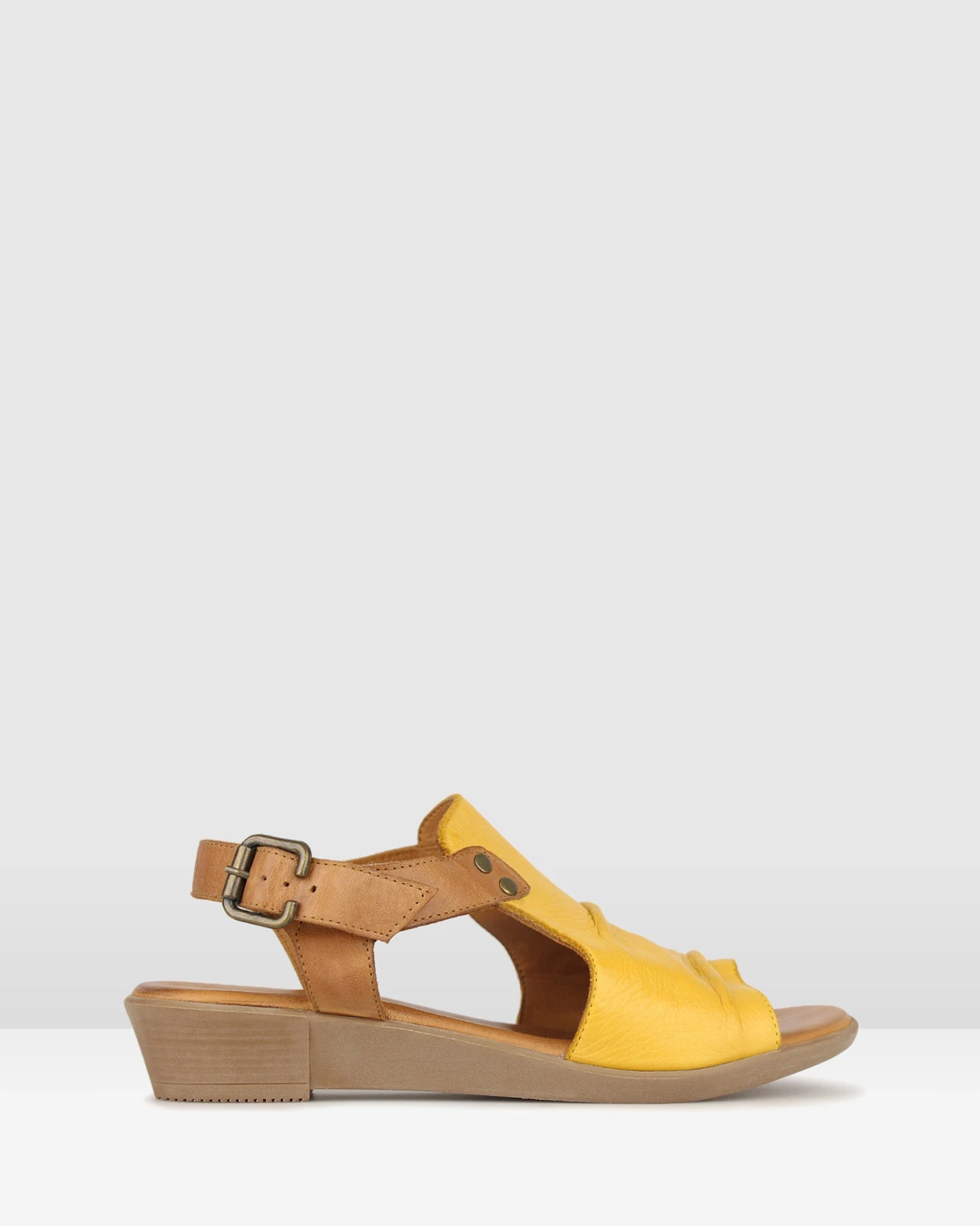 Bestie Ruched Leather Sandals Yellow/Tan By Airflex