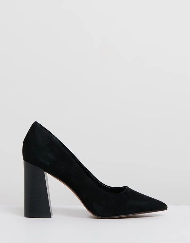 The Boom pumps by Siren feature a leg-lengthening design and are worked in a black kid suede.