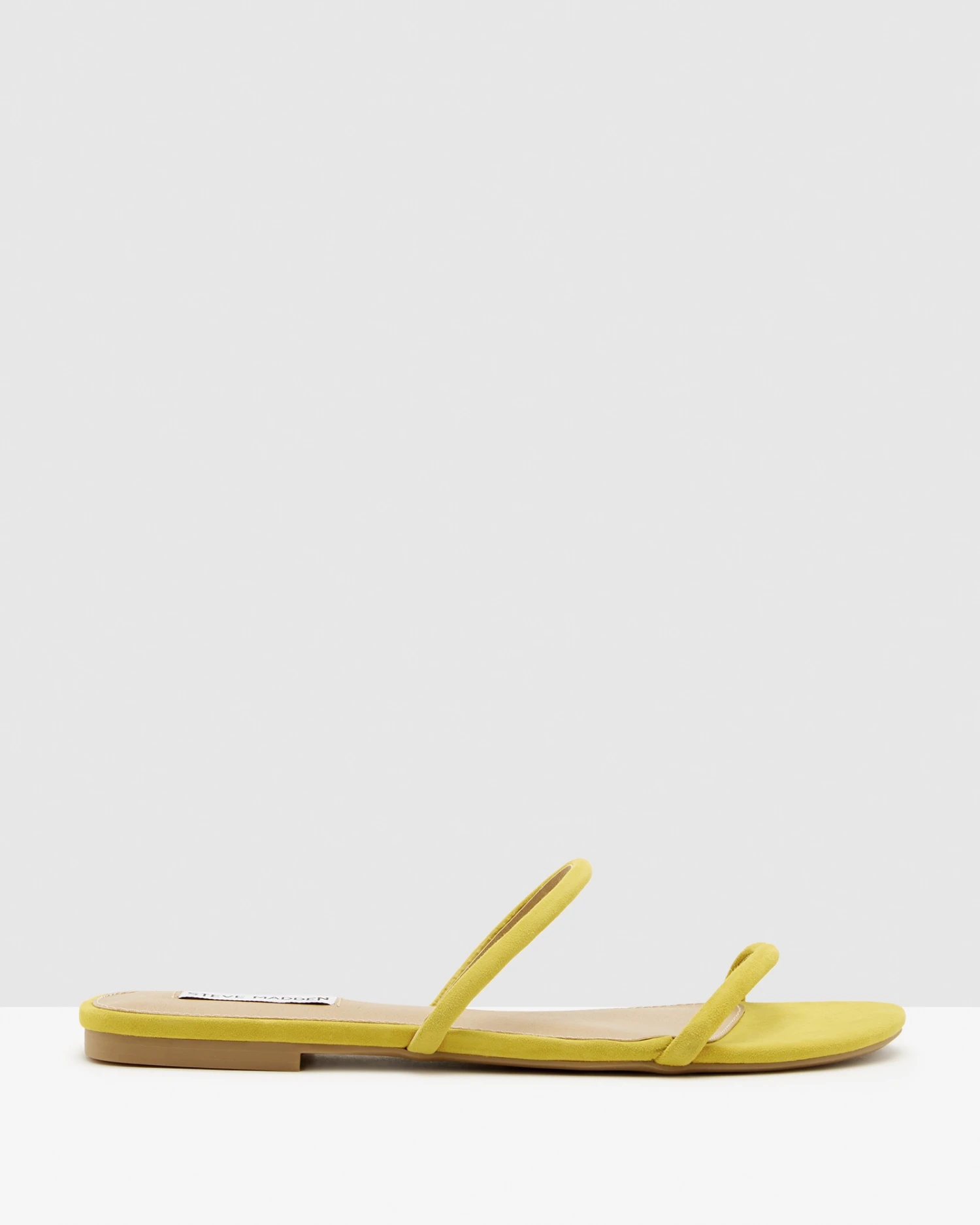Be bold, not basic in the new Brayden sandal from Steve Madden! Boasting a minimalist design with two tube straps, this sandal is perfect for warm summer days. Style it up with a dress or your favorite bikini.