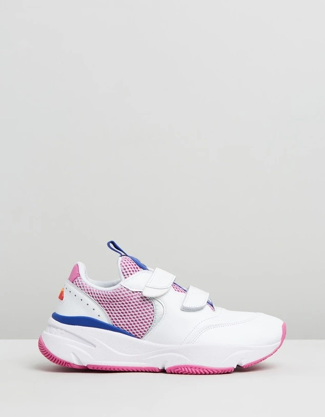 Ellesse boldly takes on the 90s-inspired chunky sneaker trend with their Cesana sneakers, fitted with Velcro straps and rubberised branding to the heel counter. – Smooth leather upper; mesh accents