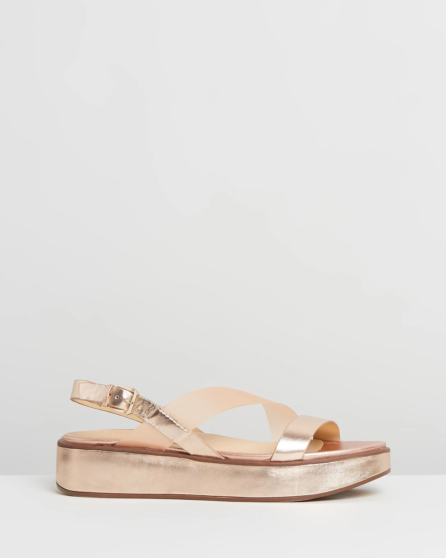 Strap up in the Charlize sandals from Naturalizer and instantly work up a chic vibe with its metallic rose gold hue and synthetic strap detail