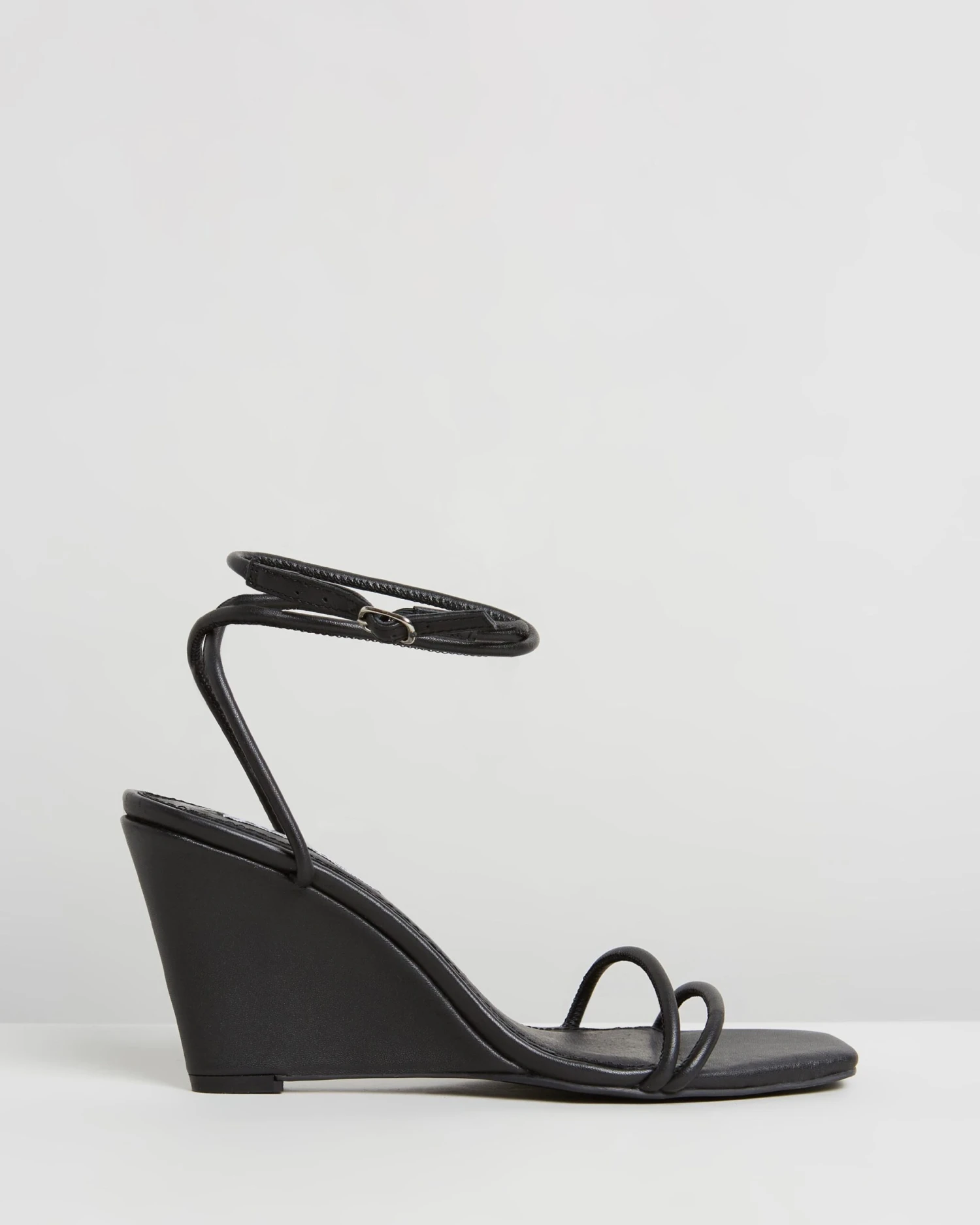 The Chloe Wedges by Caverley are defined by its buttery leather construction, versatile black hue and of-the-moment square toe.