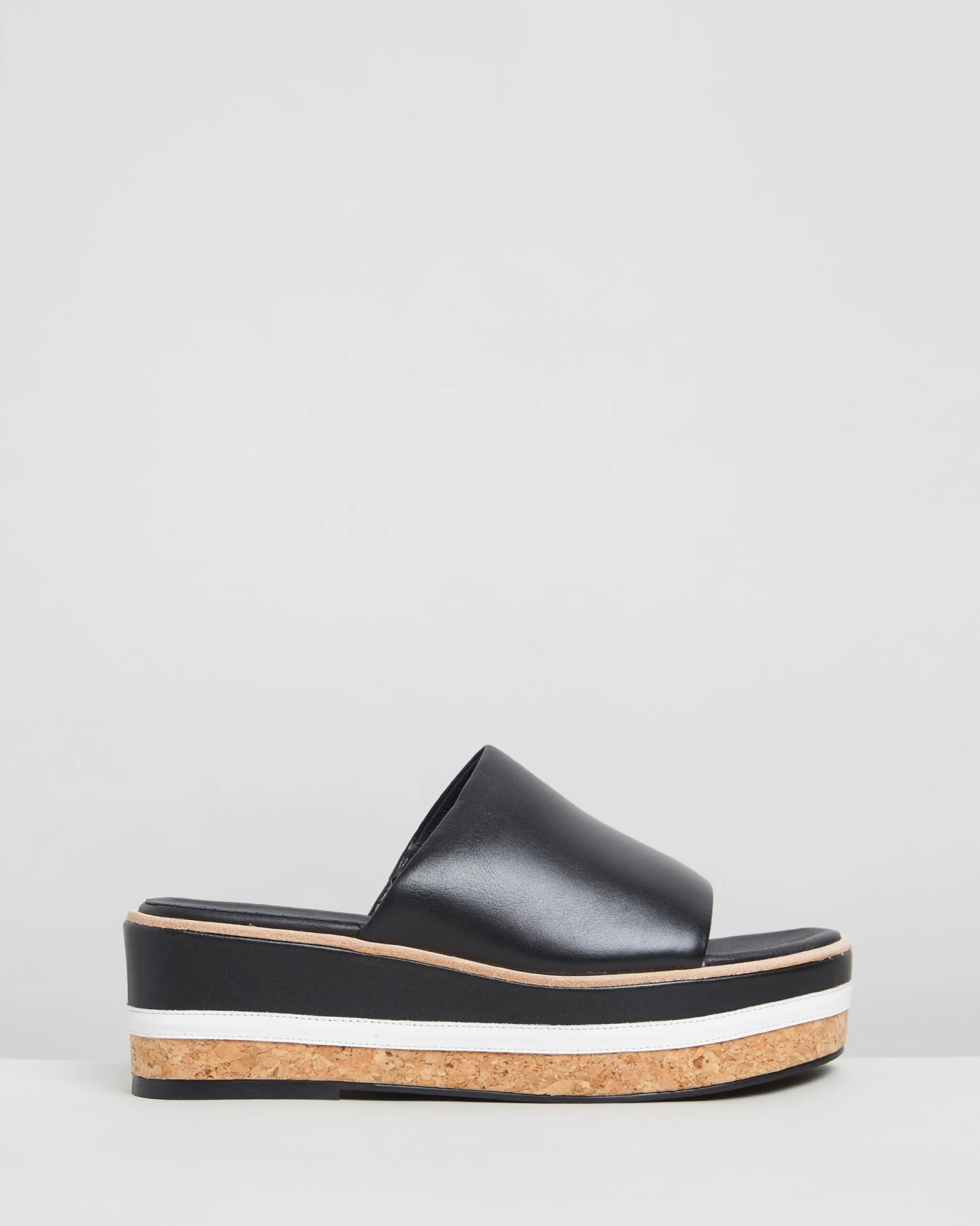 Bring a boost to your warm weather edit with the Chris Wedges from Sol Sana, which are crafted from supple black leather and perched atop a striped wedge sole.- Leather upper and lining