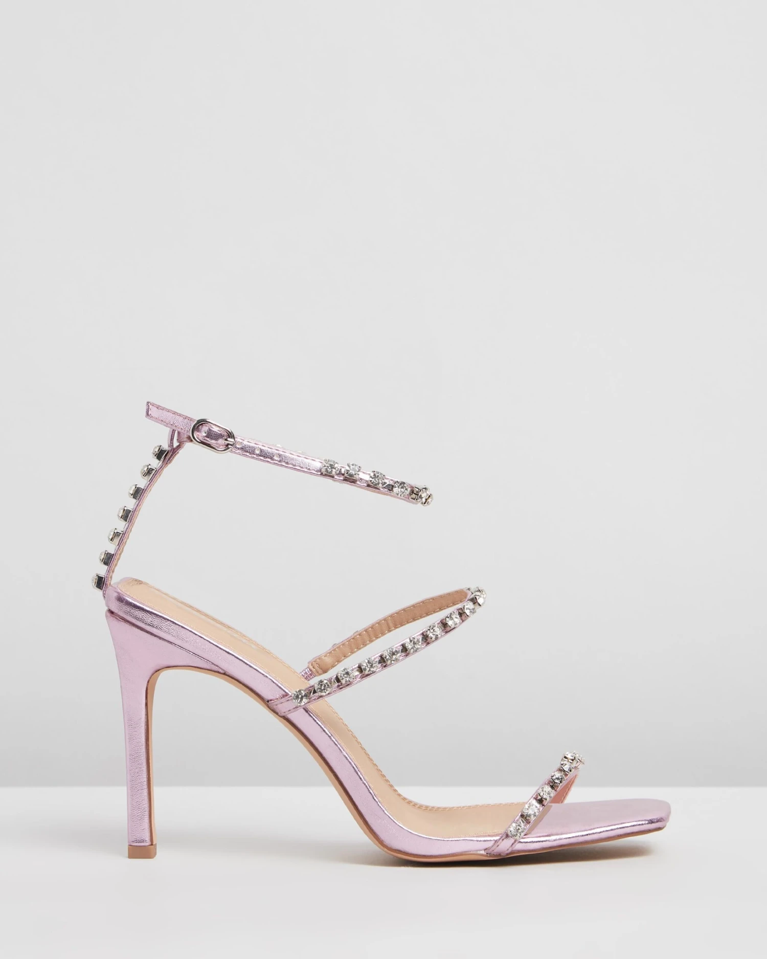 – Slim buckled ankle strap; adjustable