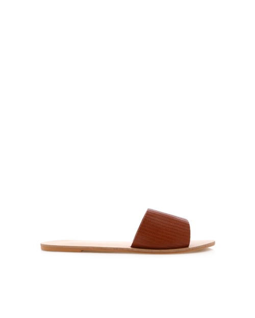 Crete by Billini is an essential slide. A must-have basic, this slide is perfect for work-to-weekend dressing. Featuring; flat rubber sole open almond toe wide front strap slip on design synthetic upper, lining and outsole Available in Black Nubuck, Black Lizard, Tan Lizard and Stone Linen.