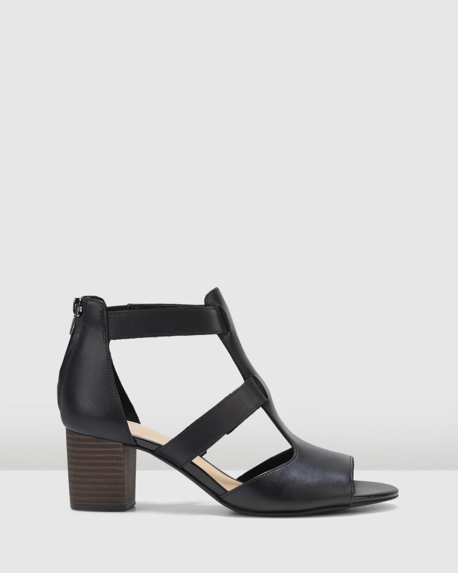 Deloria Fae by Clarks is an open toe block heel sandal with a design nod to the gladiator style. The upper is crafted from soft leather, these sandals feature a zip fastening on the heel for easy foot entry. The leather sock offers unbeatable comfort underfoot, while the 6cm stack effect heel provides wearable height and rubber on the sole ensures grip. These sandals also come in tan leather