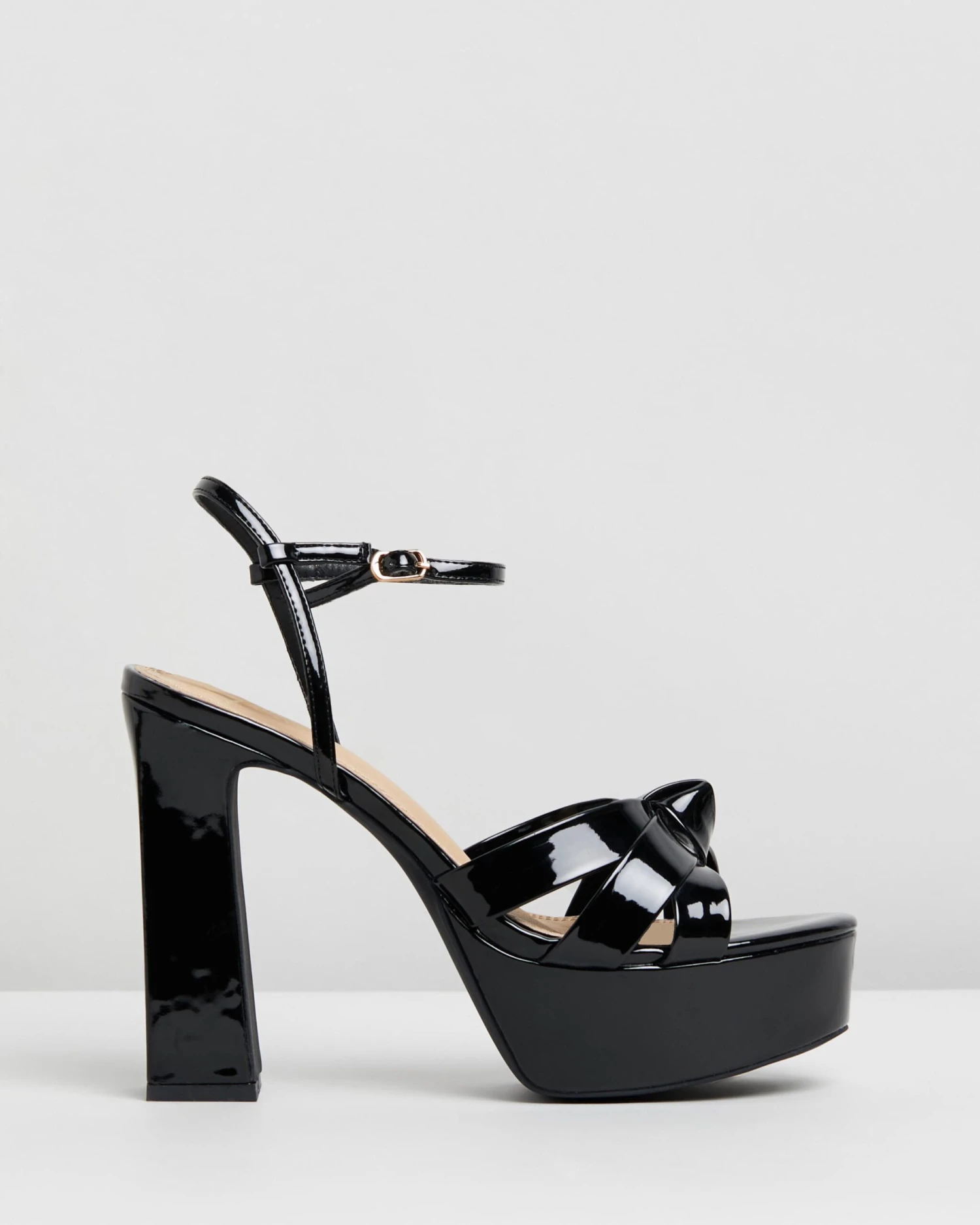 Channel retro diva vibes with the platform SPURR Diana Heels, featuring a squared block heel and glossy faux-patent leather upper that will take you from date-night to the dance floor.- Faux patent leather upper