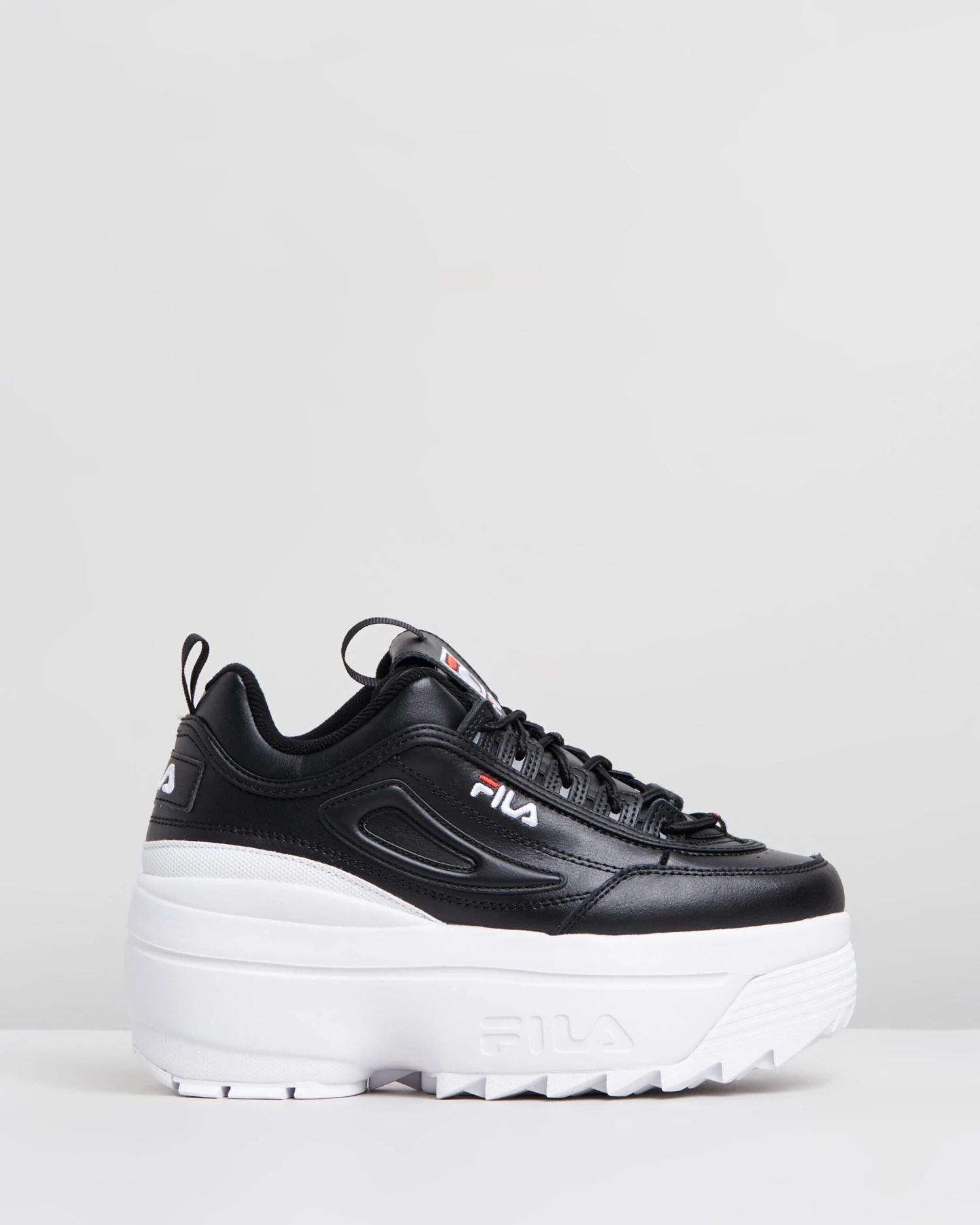 – Black upper; white outsole