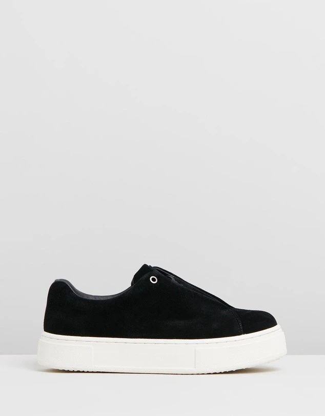 Finished in raven black suede and elevated by a chunky flatform sole, the Doja low-top sneakers by Stockholm native Eytys are inspired by sleek and streamlined Scandinavian minimalism.