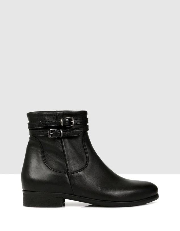 Sempre Di have been creating beautiful, contemporary footwear for Australian women for over twenty years. Crafted in Italy, the Doriana Ankle Boots displays its western-inspired design through its extensive panel construction and intricate detailing. The smooth black leather complements any ensemble as the twin buckle adornments provide a contemporary edge to its simple silhouette.