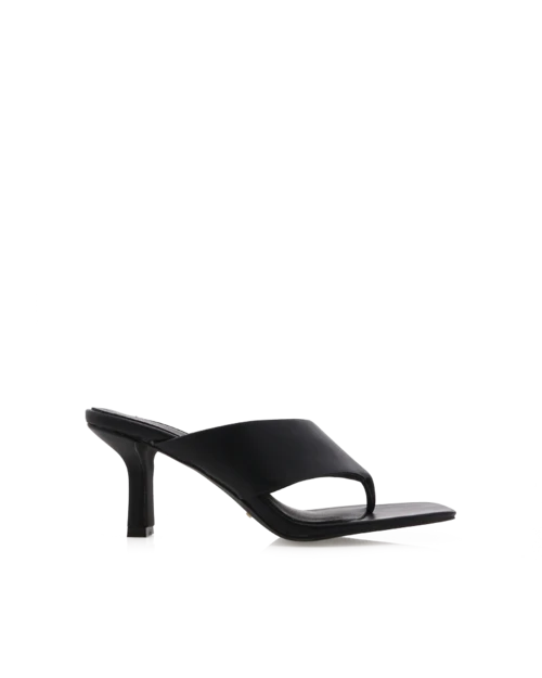 Ecuador by Billini is an on-trend stiletto mule. We can’t get enough of thong-style mules and neither will you – the hottest trend of the season is a contemporary yet timeless addition to any fashion-forward wardrobe. Featuring; mid stiletto mule open square toe thong style toe strap wide strap across vamp easy slip on design open heel counter synthetic upper, lining and outsole Available in Black and Grey. Heel height 7.7cm.