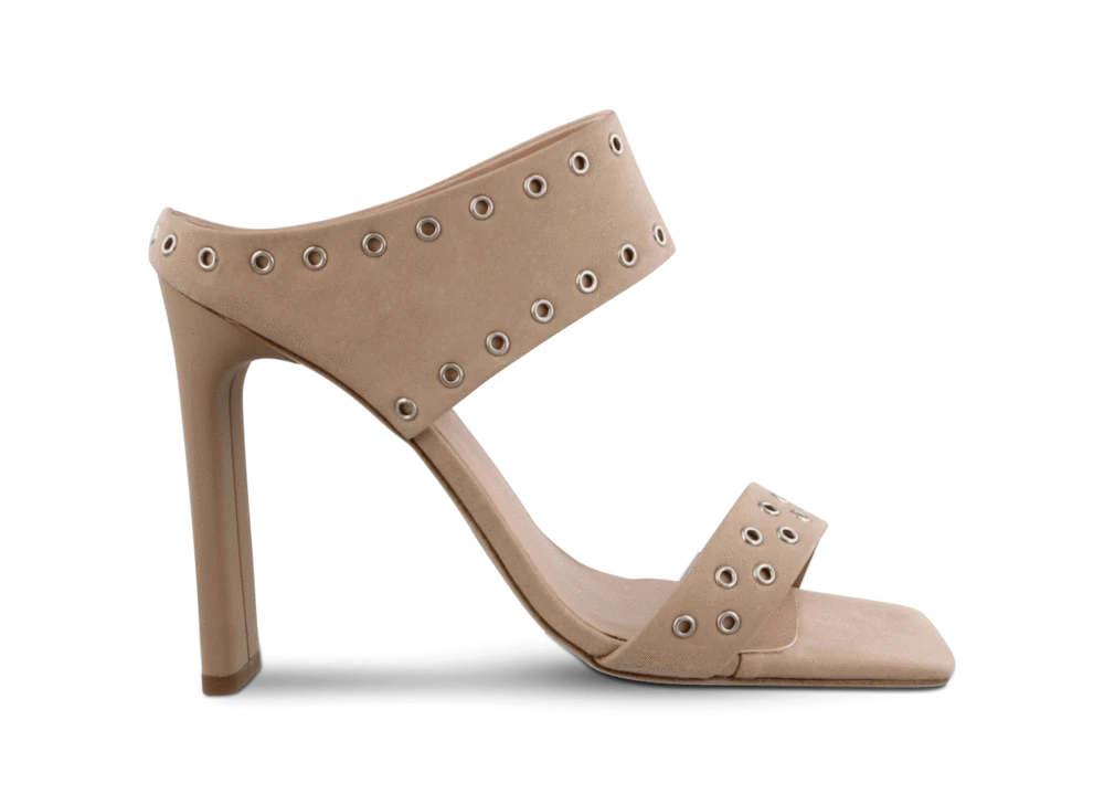 Ultra chic, the Felice heels are set to impress! Lined with contrasting silver toned eyelets, this slip-on style features foot-framing straps and a squared toe-shape – all set upon a 11cm heel height. – Material: Leather upper + Synthetic lining – Fit: True to size, take your regular size – Toe shape: Squared Toe – Heel height: 11cm