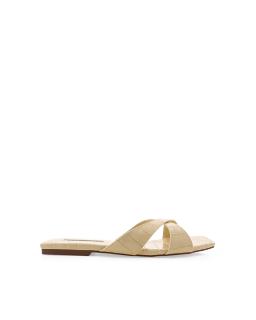 Flynn by Billini is a casual slide. Casual and easy to wear, Flynn will be your go-to slide for summer. Featuring; flat sole easy slip on design open square toe thick cross-over toe strap open back synthetic upper, lining and outsole Available in Black Croc, White Clay Croc and Vanilla Croc.