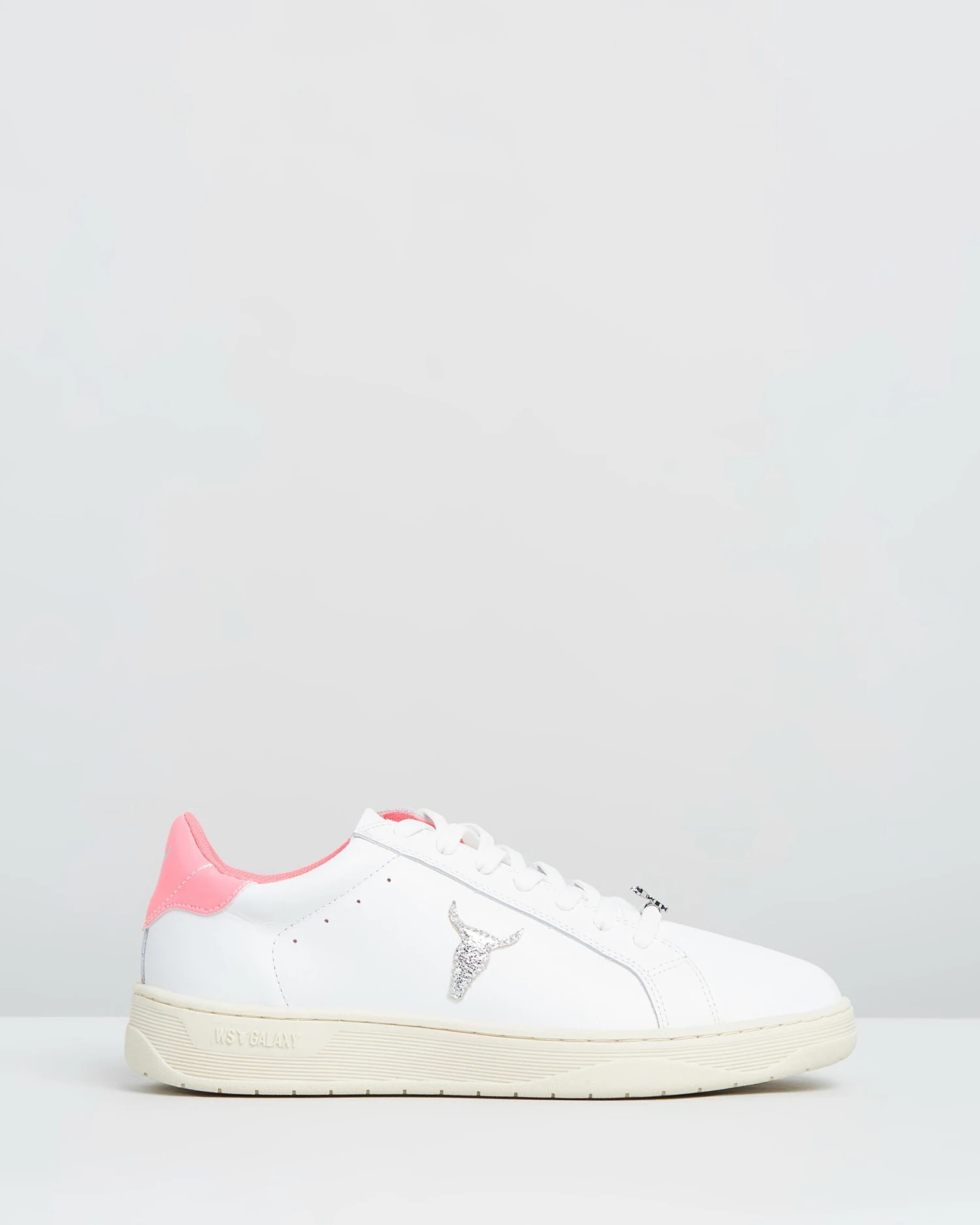 Windsor Smith revamp the classic lace-up sneaker in their Galaxy trainers, which are made from bright white leather and spliced with shots of silver and neon pink.- Genuine leather upper