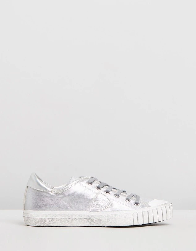Made in Italy from fine leather, the Gare Sneakers from Parisian Philippe Model combines vintage detailing with a contemporary aesthetic. The metallic silver low-tops come with a scuffed rubber toe cap and a worn-look sole for that coveted pre-loved vibe. – Genuine leather upper; twill texture