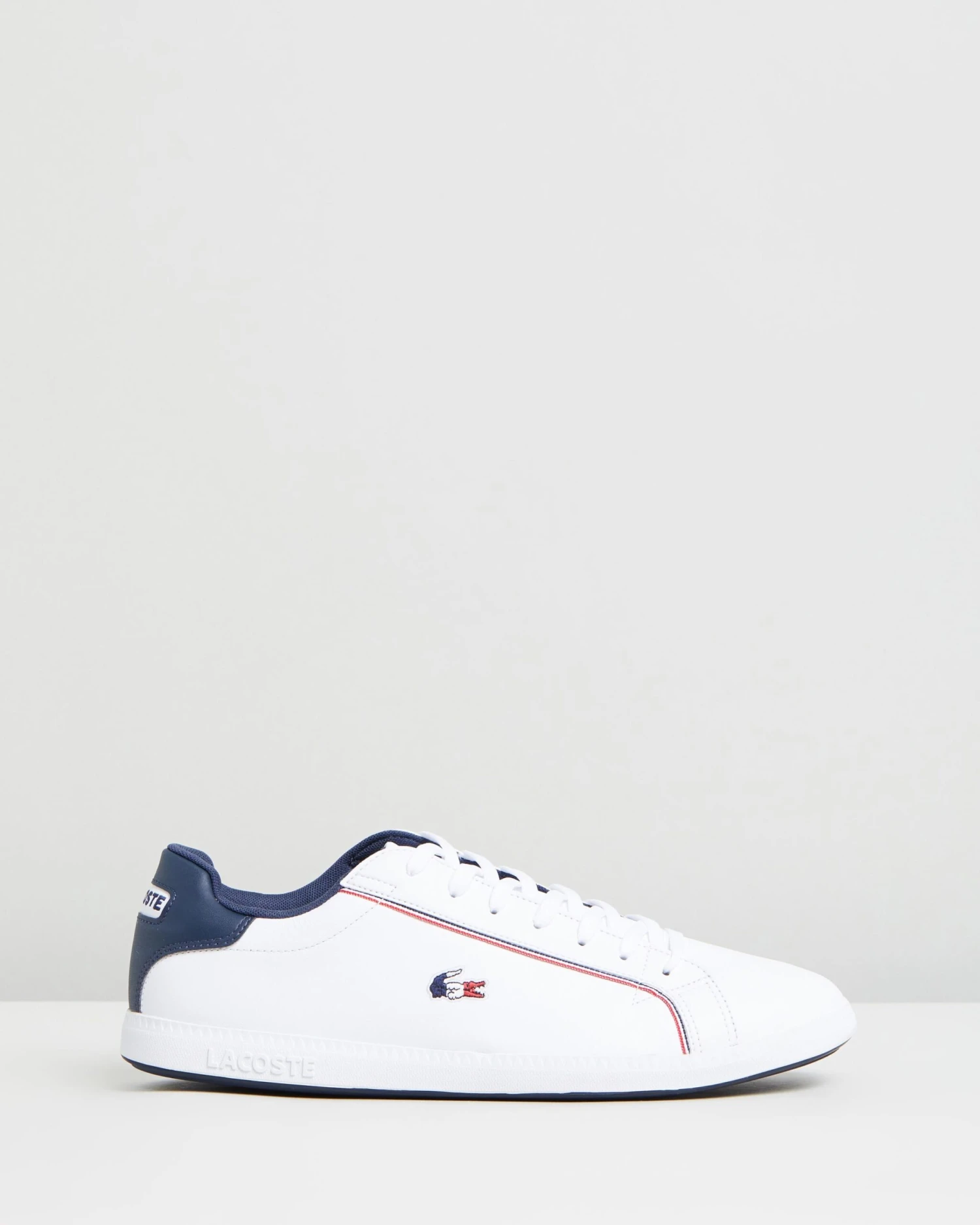 For sport-meets-casual staples that take their cues from traditional tennis codes, look no further than Lacoste. Boasting a clean low-profile design worked in smooth genuine leather, the Graduate sneakers honour the brand’s French heritage with tricolour detailing and embroidered croc logo. Finished with a cushioned Ortholite?? insole, the pair make a comfortable everyday staple to chinos and denim. – Genuine leather upper