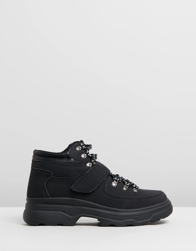 Look to the Helena Hiking Hi-Top Sneakers from Rubi for weekend wear, featuring a supple suede-look upper and a versatile black shade for easy styling no matter where your adventure takes you. – Faux suede upper