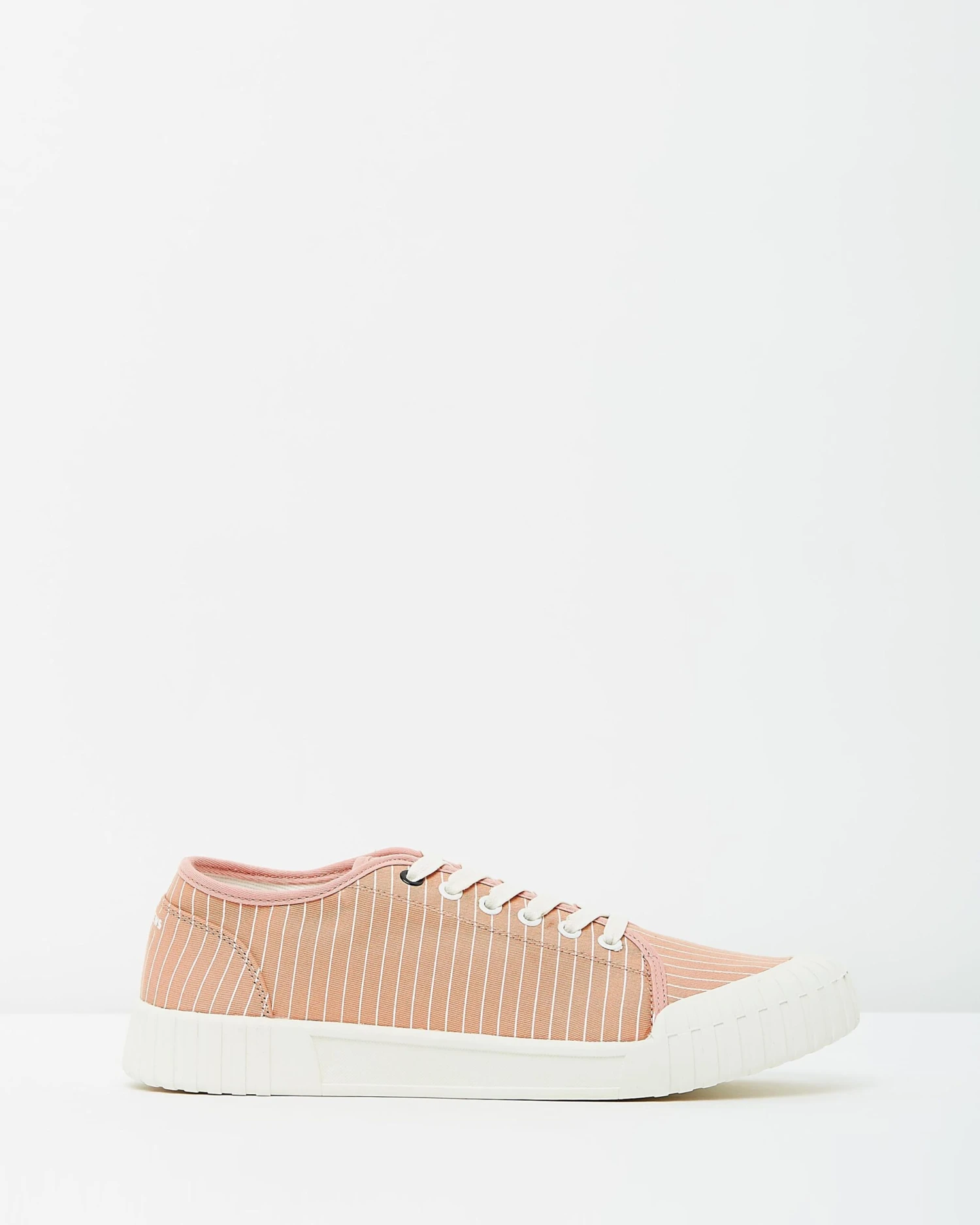 Inspired by baseball, the Good News Hurler Low sneakers feature a pinstripe upper and footbed, a nod to baseball uniforms. The casual shoes have a capped rubber toe and thick rubber outsole, ensuring durability and long-lasting wear. – Canvas upper