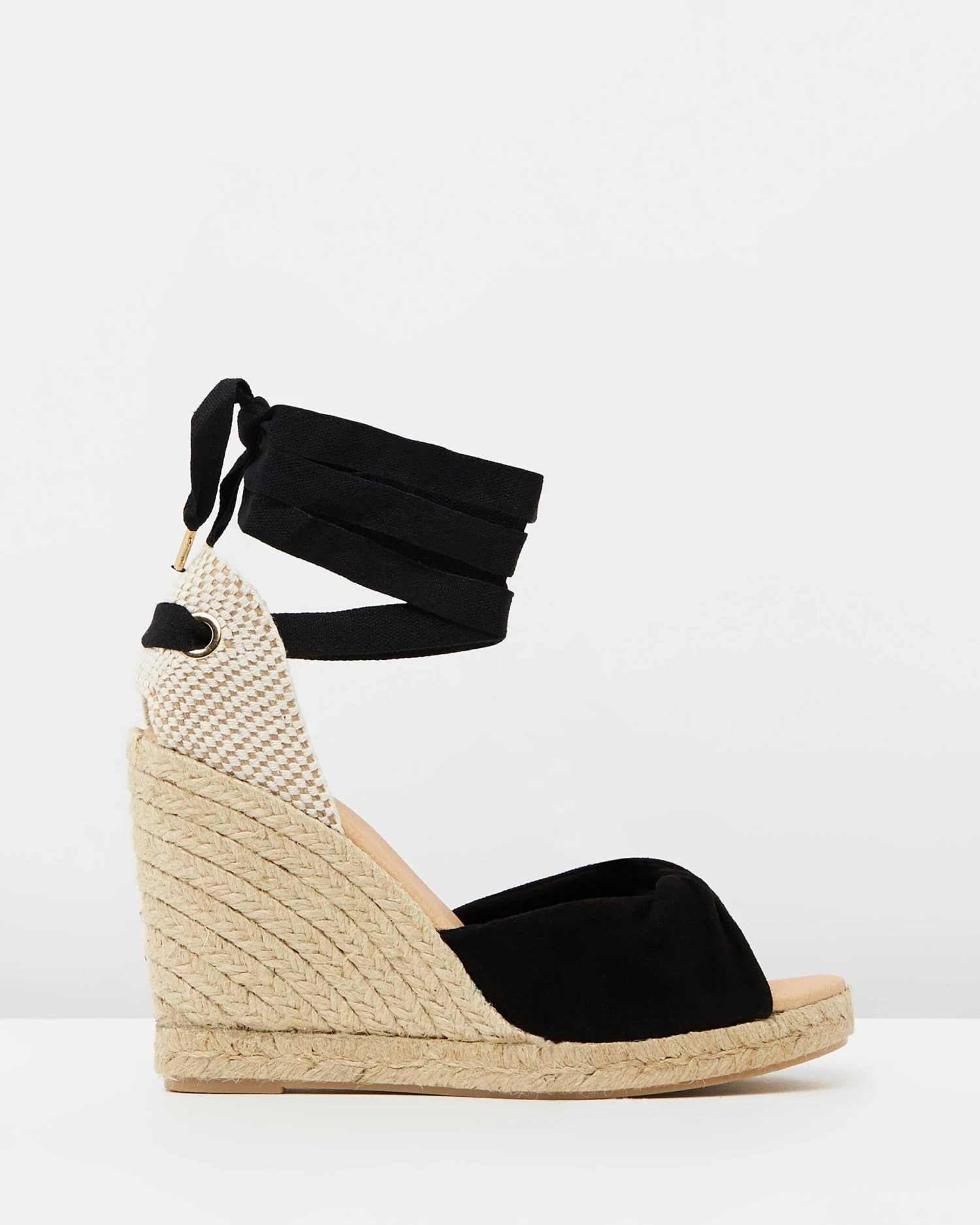 Incorporate a holiday aesthetic into your going-out footwear collection with the Hvar Espadrille Wedges. Crafted with a fusion of natural woven jute and smooth black suede-feel accents, the wedges will lend any outfit a summery vibe.- Suede-feel upper; woven jute sole