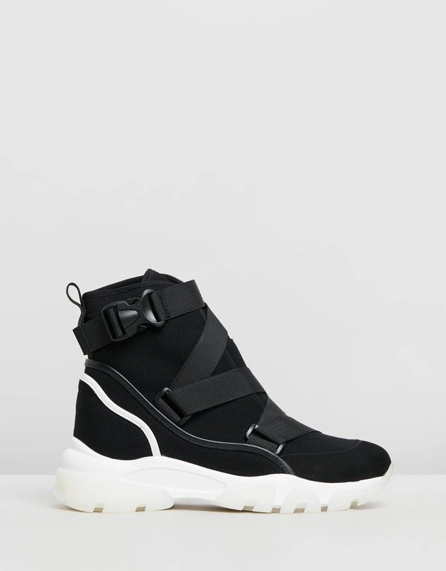 – Black zig-zag canvas lace-up system with buckle fastening at ankle