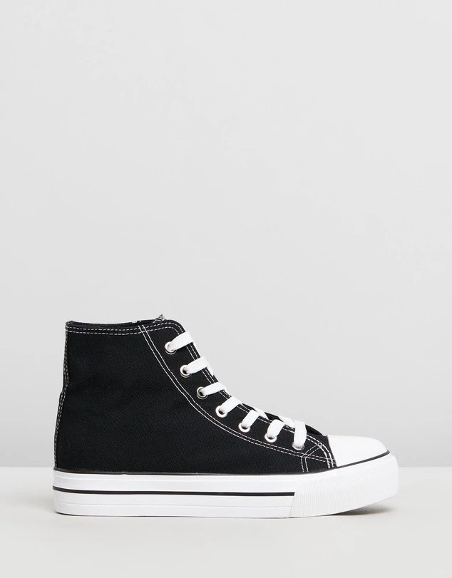 Sporting a high profile lace-up design, Rubi’s canvas Jemma High Top Sneakers will team flawlessly with blue jeans for vintage-infused casual. – Canvas textile upper