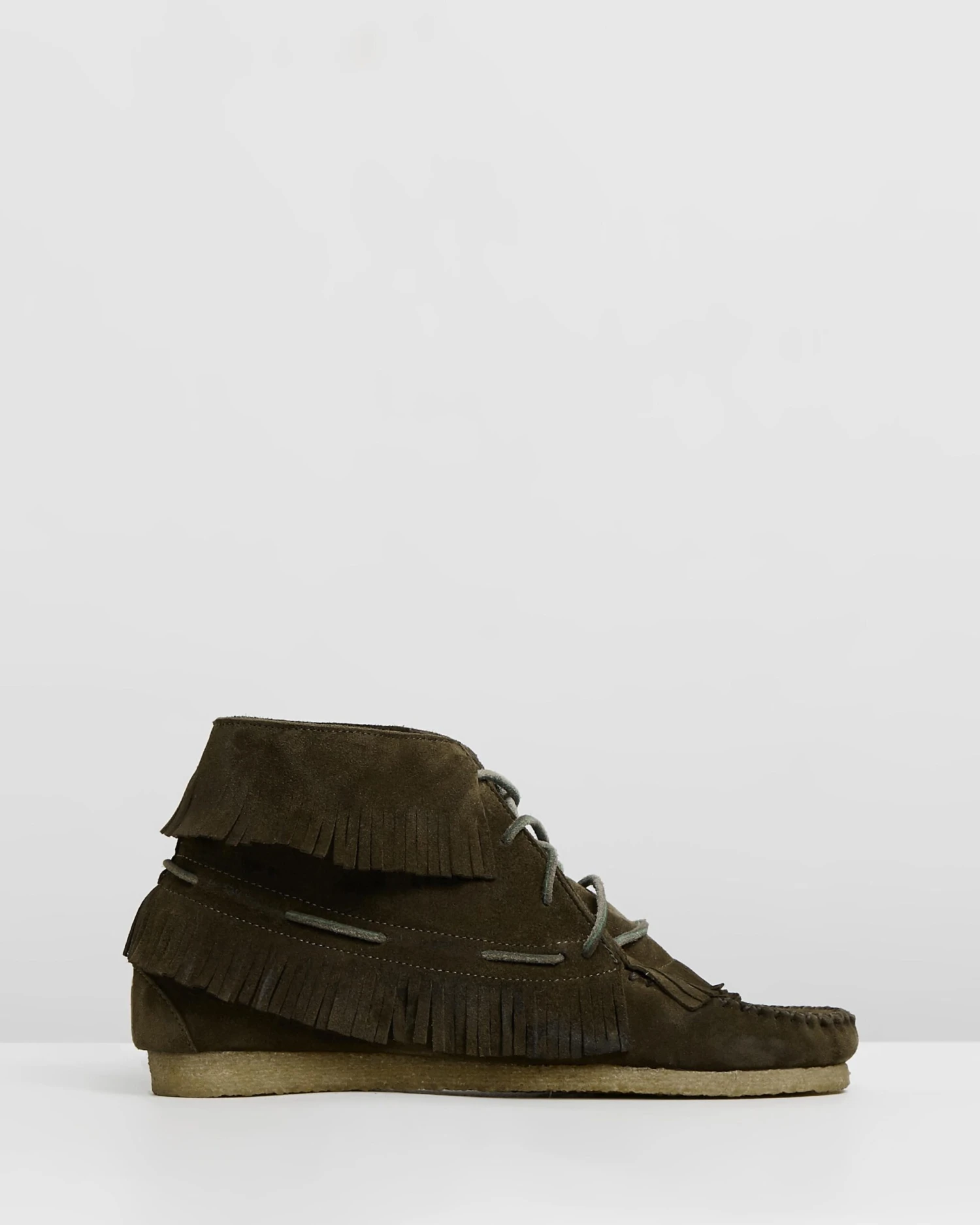 – Fringed trims to toe, collar and midsole