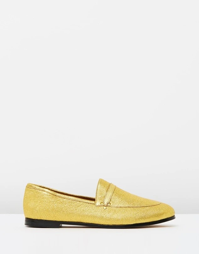 Jerome Dreyfuss describe their Gabi style as Wes Anderson’s Margot Tenenbaum in a loafer. Slender, stylish and beautifully hand crafted in Portugal, these flat slip-ons are finished in metallic gold with ever so subtle gold-toned studs. Wear them everywhere with anything, from A-line skirts to trousers. – Genuine leather upper, lining and sole