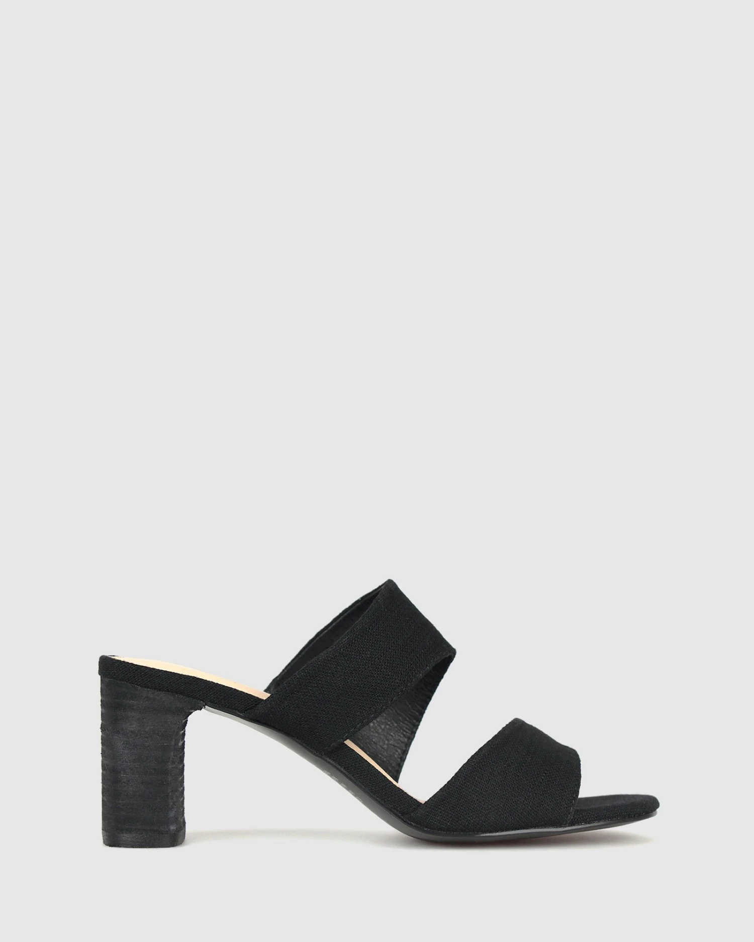 Kobie Linen Block Heel Mules Black Linen By Betts