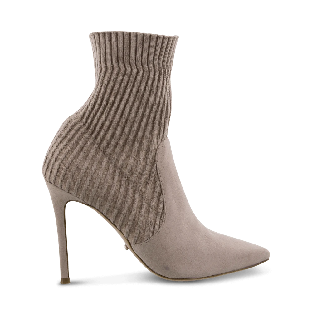 A warm grey ribbed sock boot with a pointed toe and stiletto heel. – Combination leather and synthetic upper – Stiletto heel – Pointed toe – Fitted look – Leg Height: 14cm Heel Height: 10.3cm