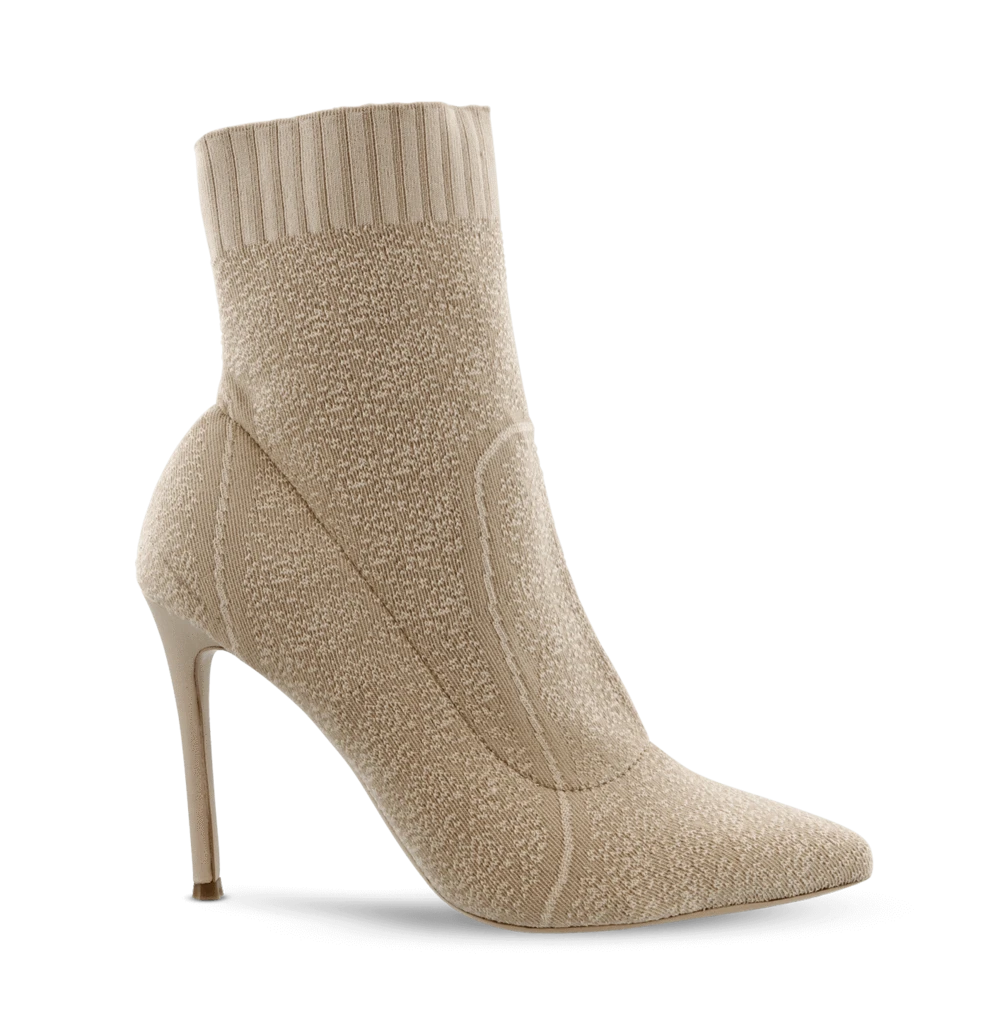 Made with a warm and neutral tone, this biscuit boucle sock boot features a 10.3cm stiletto heel, pointed toe, with a textured man made fabrication. -Synthetic upper and lining – Leg Height 14cm – Heel Height 10.3cm – Pointed Toe