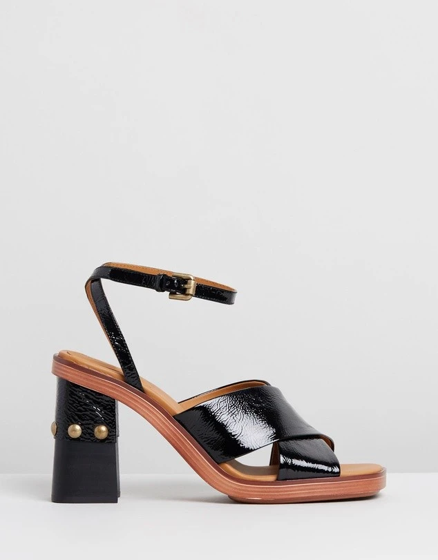 The Leather Stud Sandal Heels from See By Chlo?? infuses this season’s must-have silhouette with a ’70s-inspired playful glamour. Crafted from crinkled patent leather, this pair features wide crossover straps, while vintage gold-toned studs adorn the stacked block heel. The versatile hue allows the pair to transition seamlessly from day to night.
