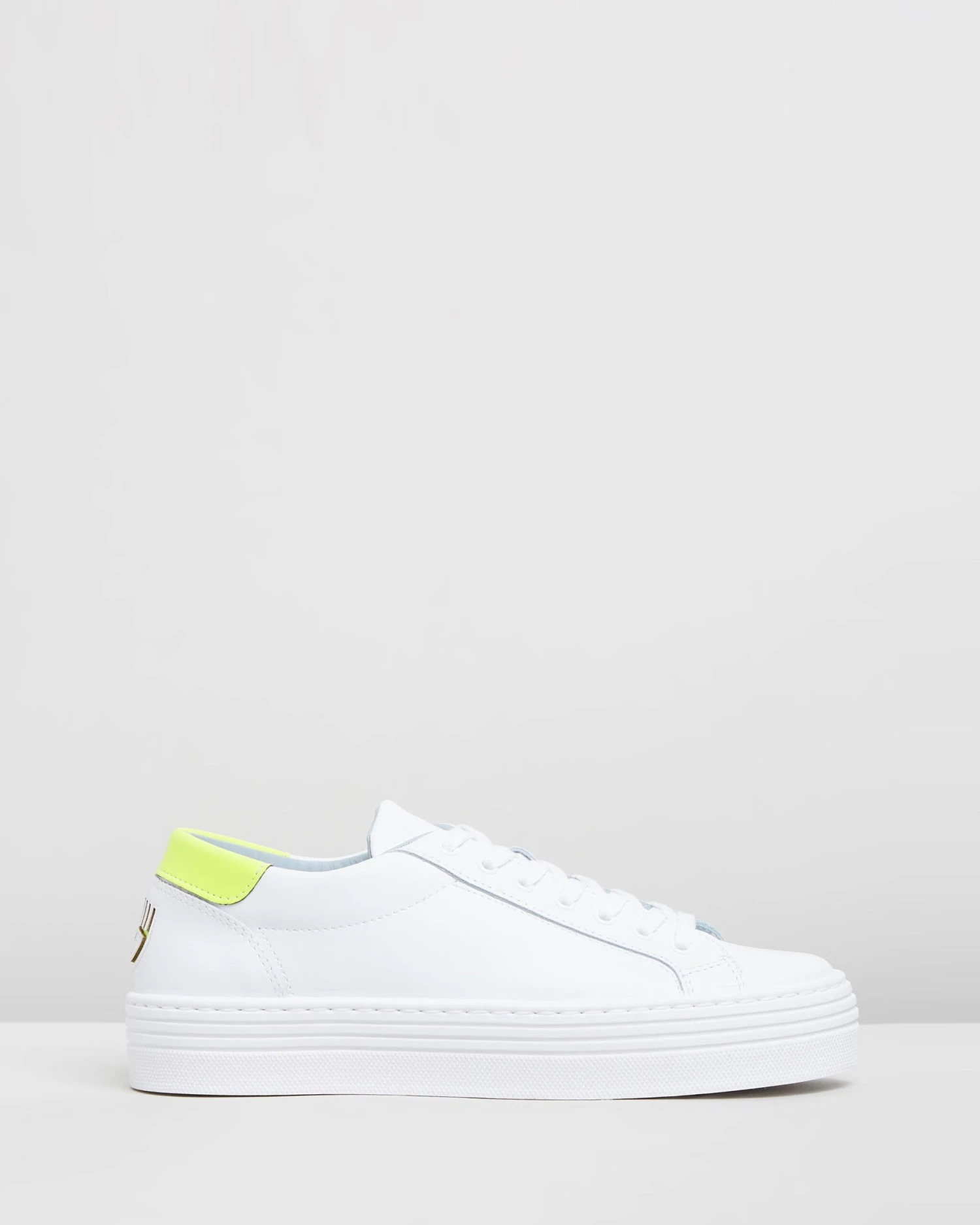 – Fluoro yellow heel collar; debossed logo to the heel counter