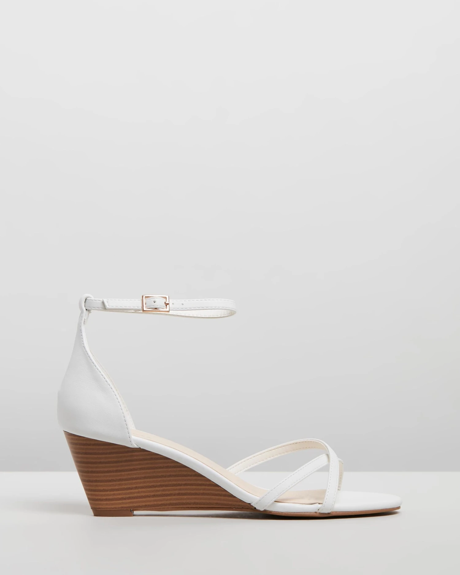 Pair the Niles Wedges from SPURR with high-waisted shorts and a slinky cami for a summer-ready ensemble that will take you from backyard brunches to poolside soirees and everywhere in between.- Faux smooth leather upper
