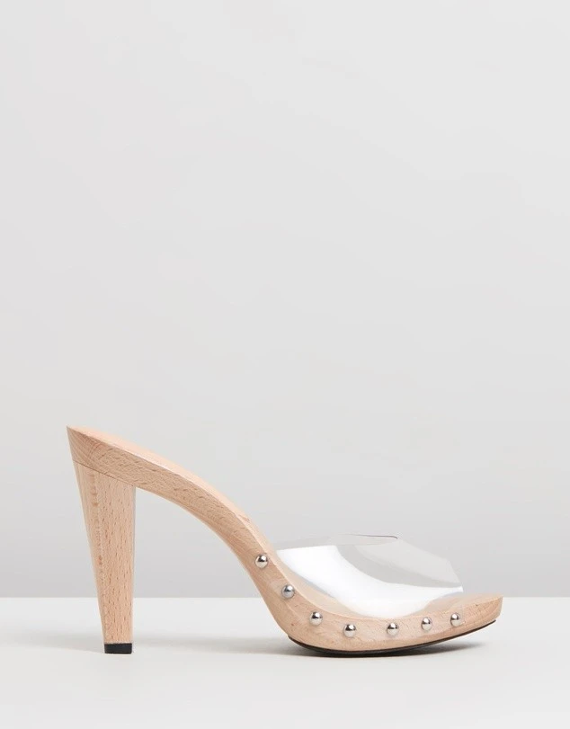 Harmonising a wood-look sole with a translucent rubber toe strap, the Palms Pumps exude a resort-inspired aesthetic. Dreamt up by New York-based brand Brother Vellies, these cone-heeled mules will team stylishly with a brightly-rendered short suit. – Translucent rubberised upper