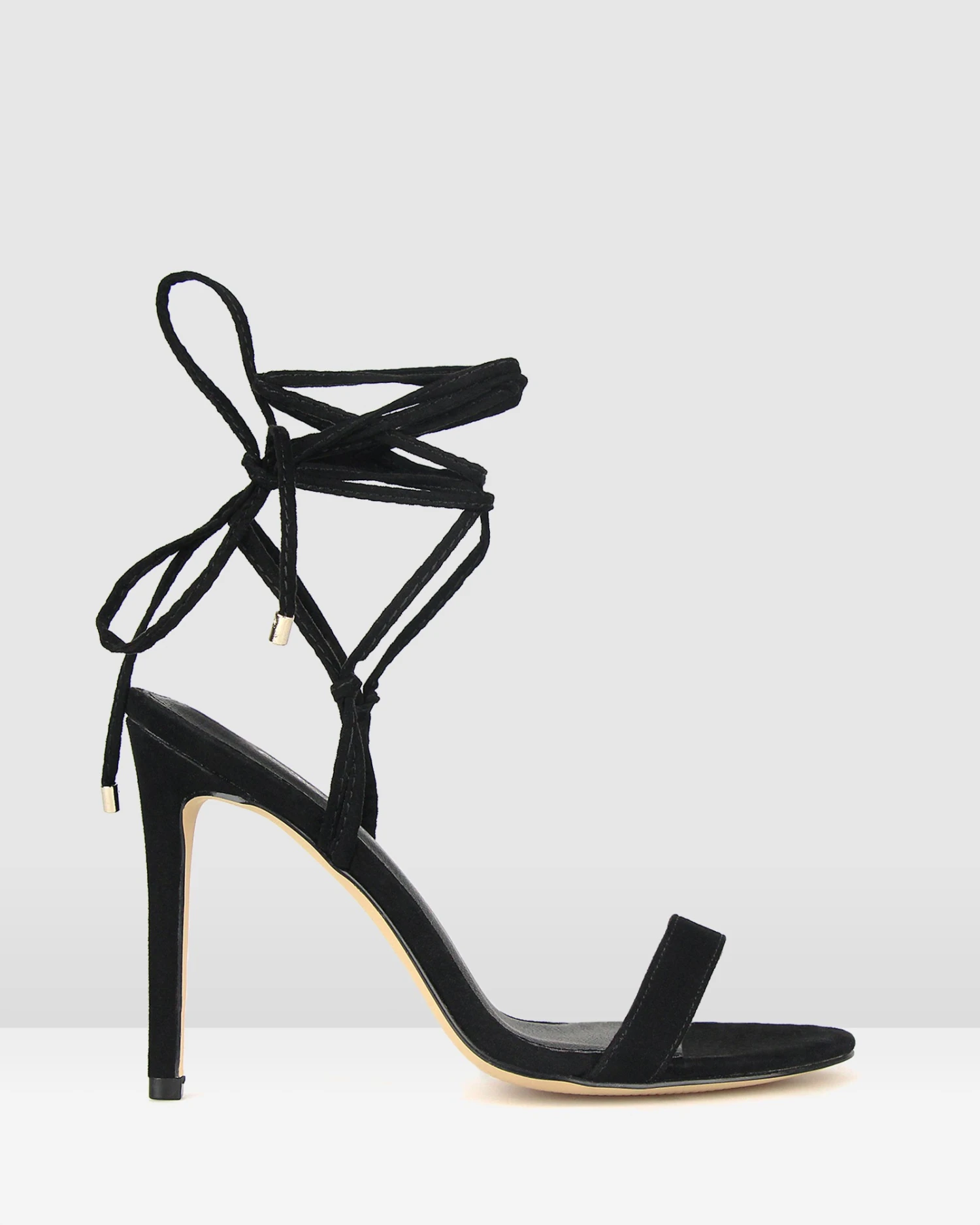 Parker Ankle Wrap Stiletto Sandals Black Micro By Betts