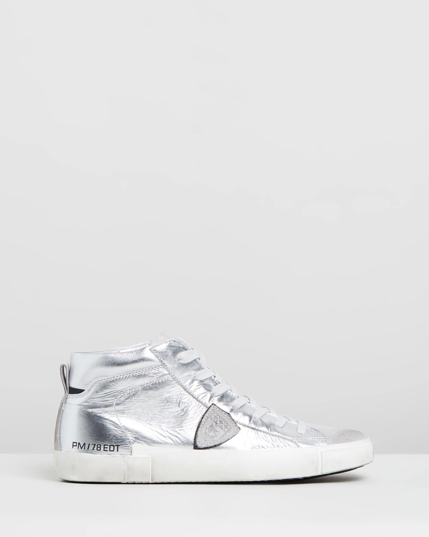 Contemporary footwear and accessories maison Philippe Model cleverly combines the best of Italian and Parisian design to deliver premium pieces you’ll turn to season after season. The label’s PRHD Sneakers are meticulously handcrafted in Italy from textural suede, with strategic scuffing and futuristic silver coating dovetailing to create an air of intentional insouciance. – Coated metallic foil and suede upper; partial leather lining