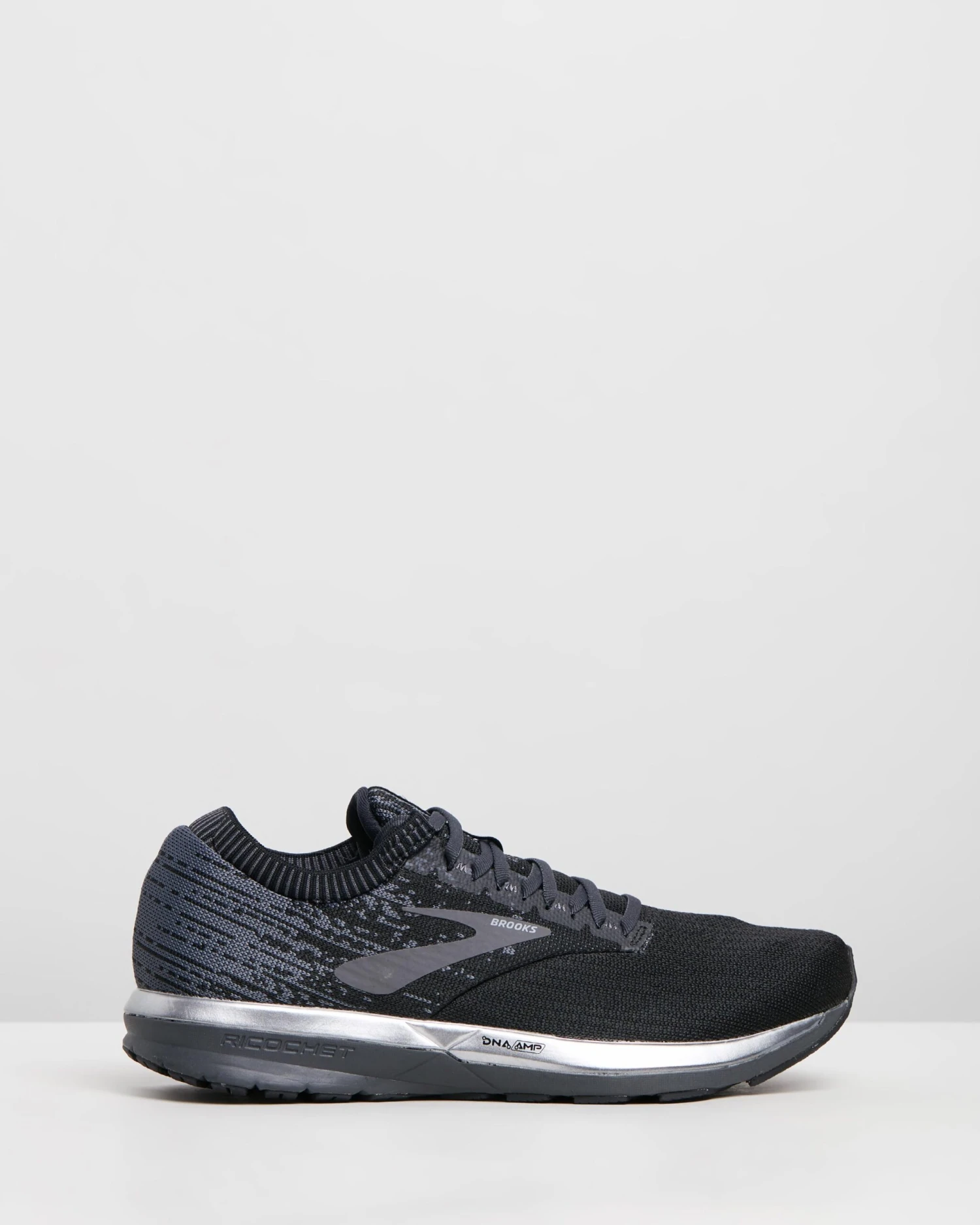 The performance-orientated design of the men’s Brooks Ricochet running shoes will allow you to perform at your best. The running shoes have a responsive ride that will adapt to each runner and promote a fast foot transition. The DNA AMP midsole and high-traction rubber sole offers grip, flexibility and durability, while the mesh upper is supremely breathable. – Knitted sock-like upper