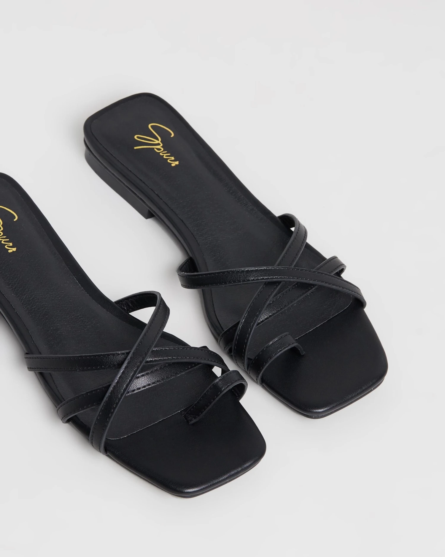 Made in a forward-thinking square toe design, the Ronnie Sandals from SPURR will be on your feet all holiday long with their strappy caged vamp and looped big toe. – Leather-look upper