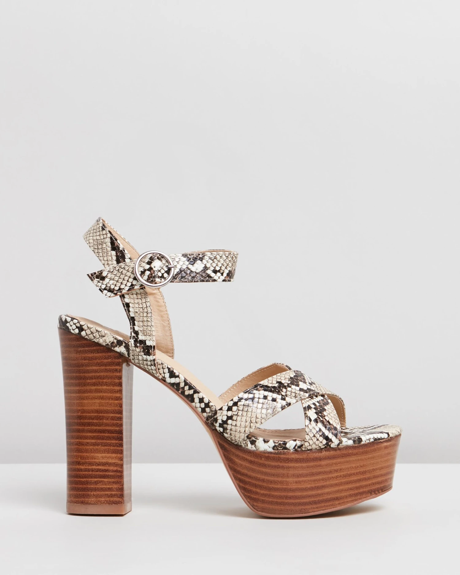 – 12.5cm wood-look stacked block heel; 4cm platform
