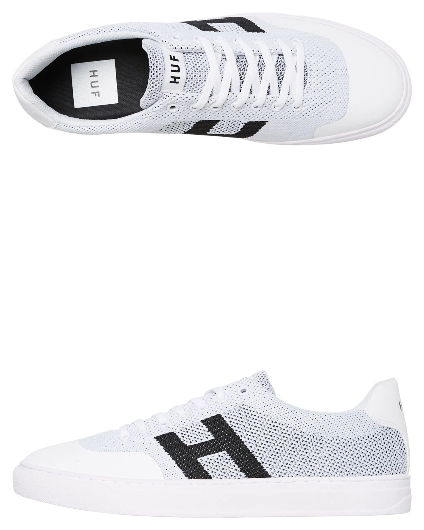 Features: Style: Men’s Sneaker Colour: White Upper Material: Specially-engineered knit low-profile upper Outsole Material: Herringbone-tread Infinity Rubber? outsole is grippier and more durable than standard compounds Exterior HUF ‘Rubber Shield’ for ollie protection One-piece toe vamp to minimize wear Textured toe bumper for added protection ‘Strut Soft’ insole for shock absorption Size + Fit Guide: US sizes Please refer to the Size Chart for further information