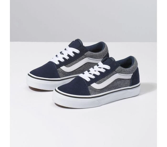The Old Skool, the Vans classic skate shoe and first to bear the iconic sidestripe, is a low top lace-up featuring sturdy canvas and suede uppers, re-enforced toecaps to withstand repeated wear, padded collars for support and flexibility, and signature rubber waffle outsoles.