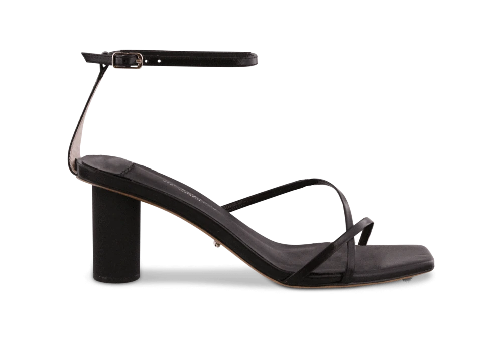 Strap yourself into this season’s hottest style the Summer heel. Slender black leather straps cross over to define and support. Set on a clear cylindrical block heel and a square toe they will be your new go-to in hot weather. – Material: Leather upper and synthetic lining – Toe-shape: Square open toe shape – Fit: Runs large, we recommend choosing a half size down – Heel Height: 6.5cm