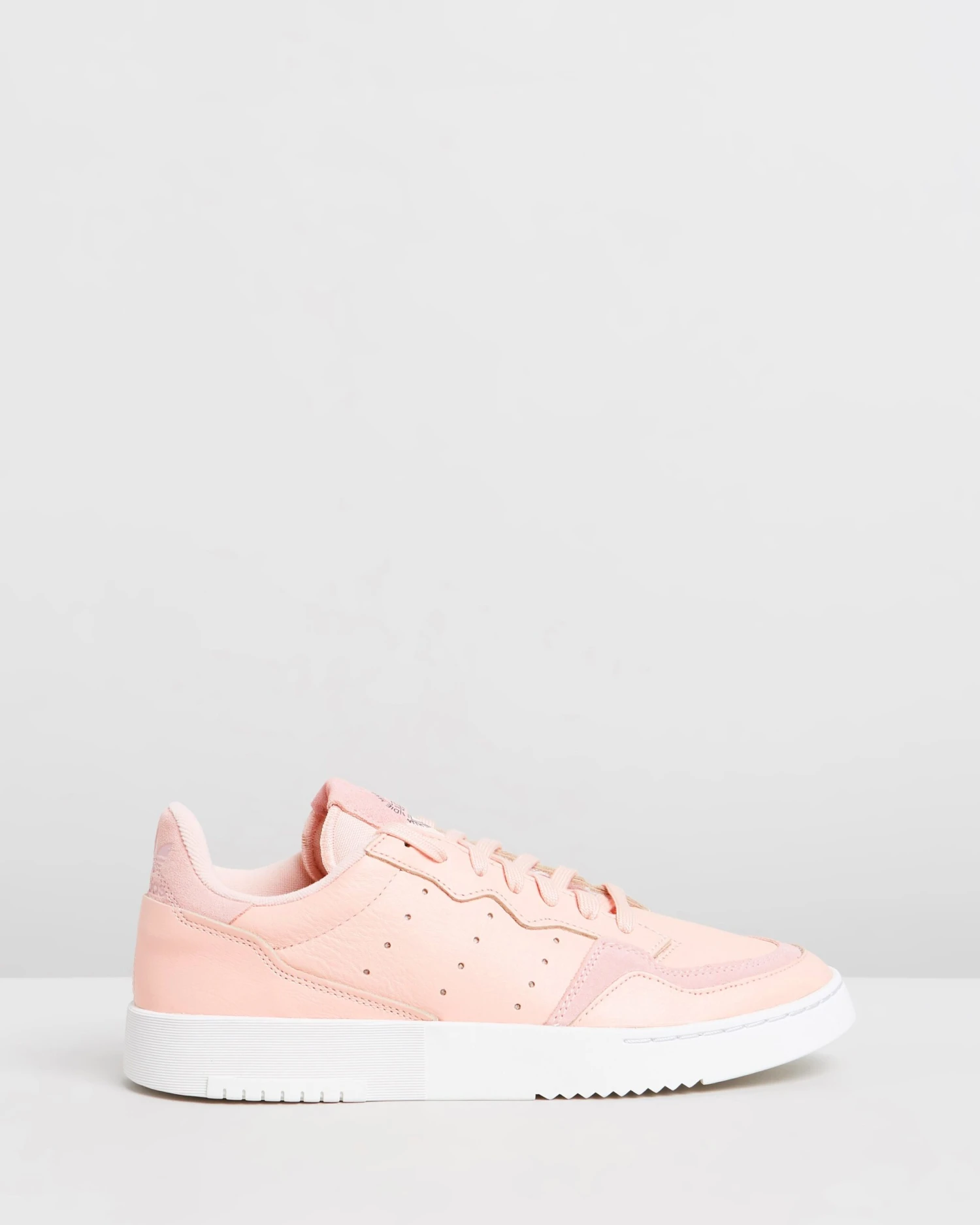 The Supercourt sneakers from adidas Originals exude a distinct retro-reminiscent aesthetic with their perforated genuine leather upper, chunky rubber outsole, and debossed Trefoil logo to the heel counter.
