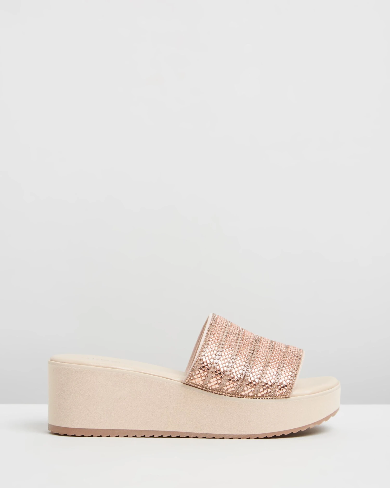 – Nude hue; rose pink rhinestone embellishments
