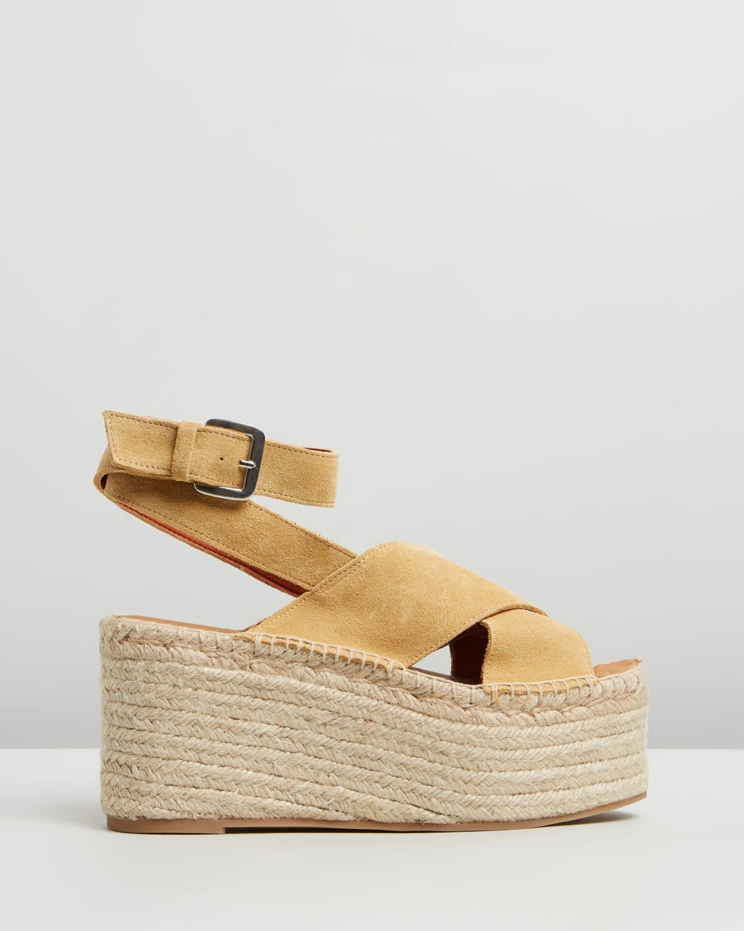 PLEASE NOTE – THE ICONIC IS UNABLE TO SHIP THIS PRODUCT TO NEW ZEALANDRefresh your open-toe edit for the warmer weather with Alohas Sandals. Handcrafted in Spain, the Vegas wedges are expertly crafted from warm golden split leather in a strappy crossover design and finished with a woven jute platform wedge.