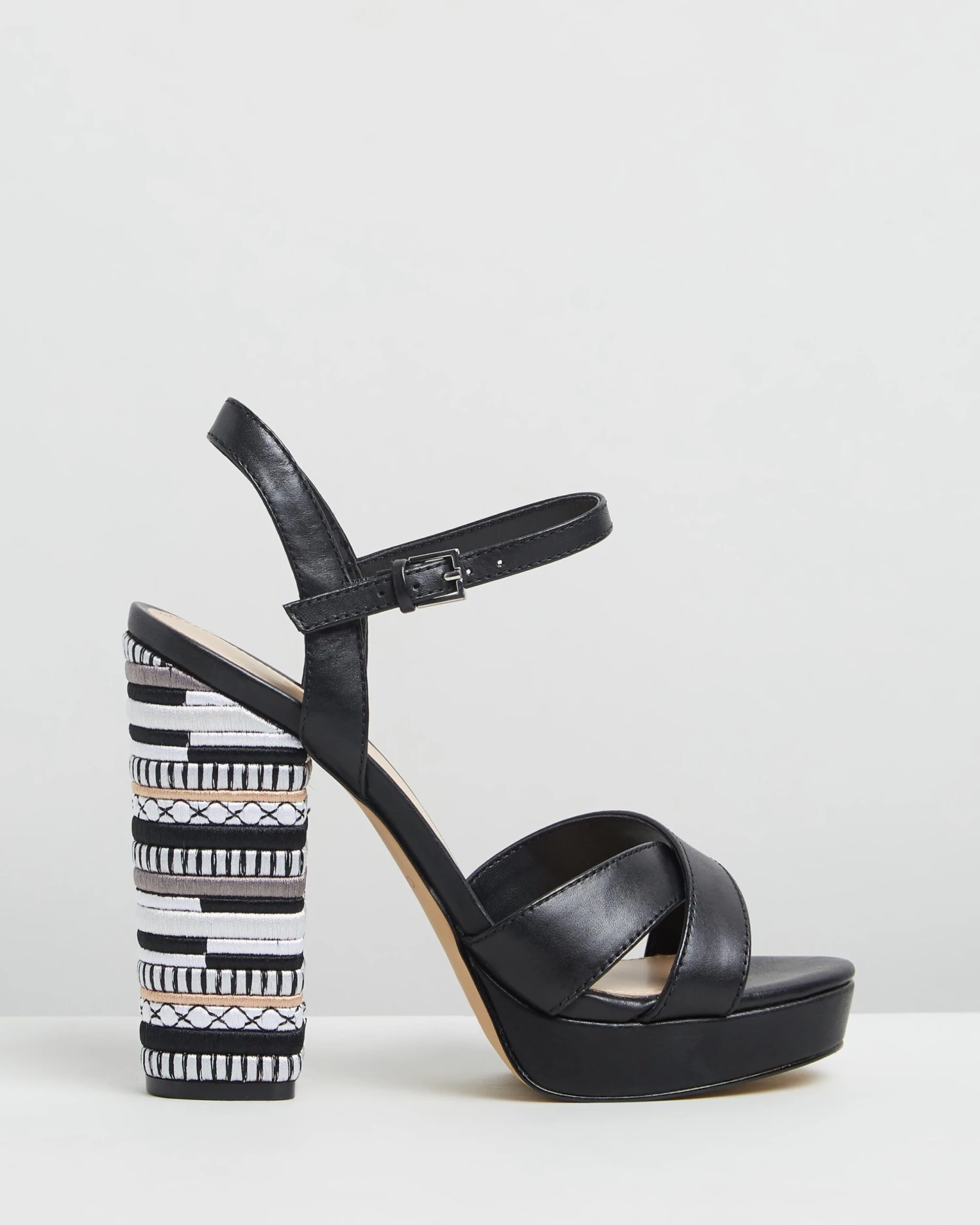 – Black shade; stripe-woven heel in shades of white, black, grey and beige