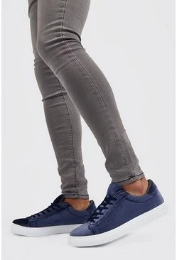 Velvet Lace Up Trainer In Grey